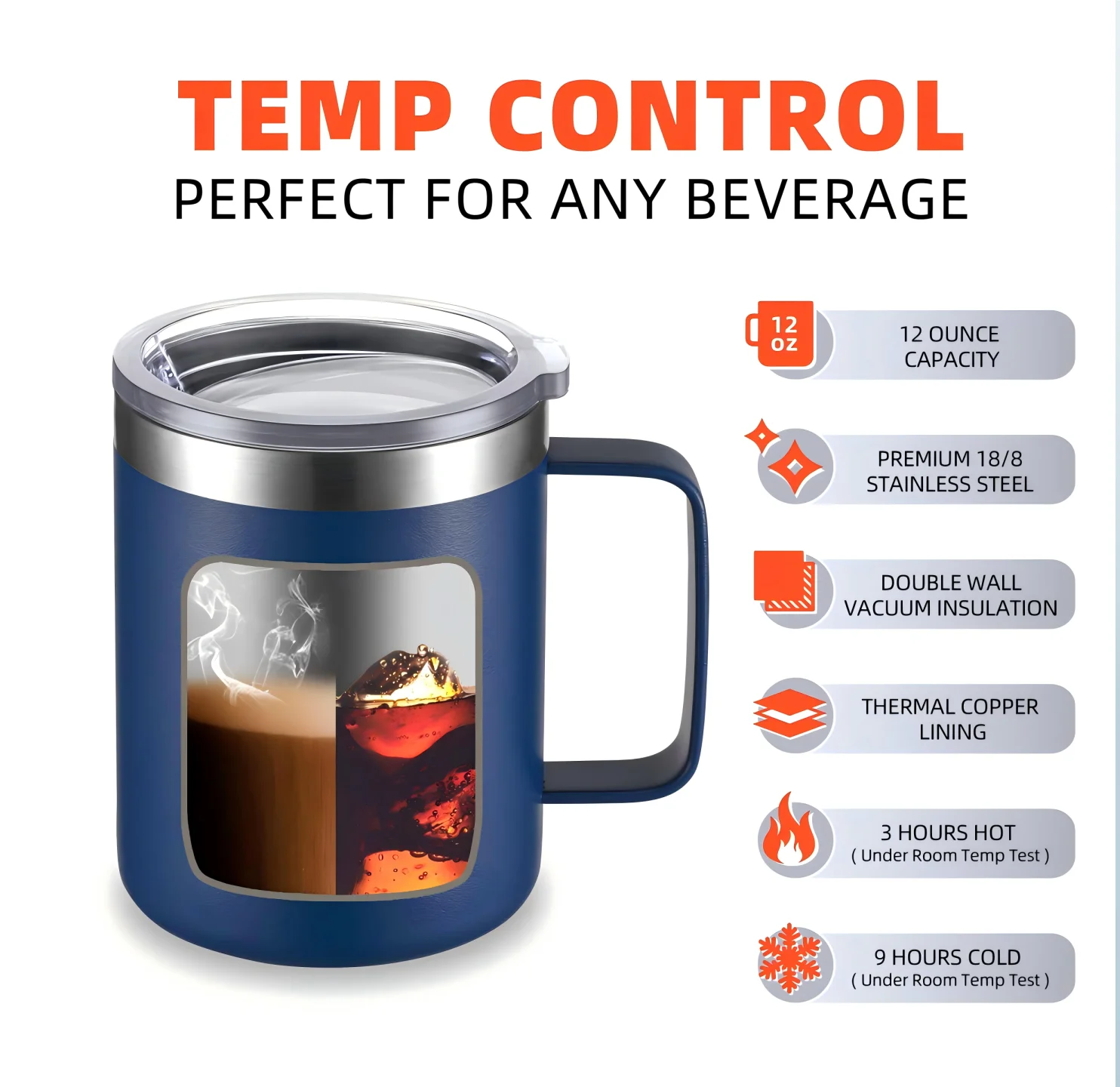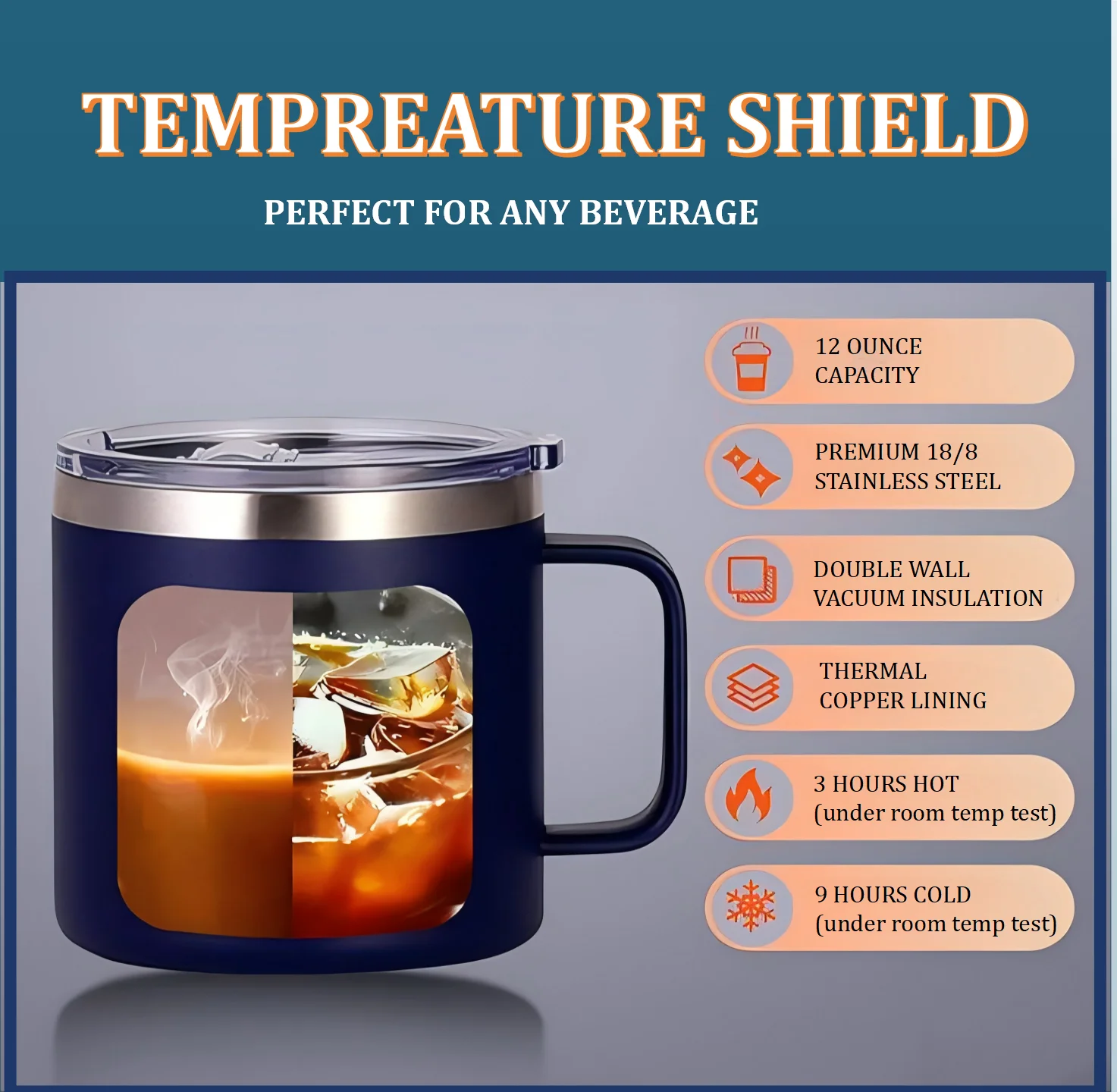 After manual testing by our factory team and professional testing by the institution, our 40oz generation tumbler handle cup can keep heat for about 10 hours and can keep ice for about 20 hours The data is for reference only, and the actual situation may change slightly!!