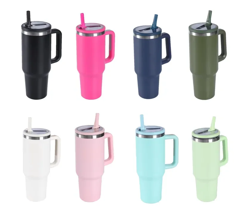 2024 New 40 oz Stainless Steel Tumbler Vacuum Insulated Reusable with Handle for Straw Lid for Drinks Cold Coffee Travel Gym Car