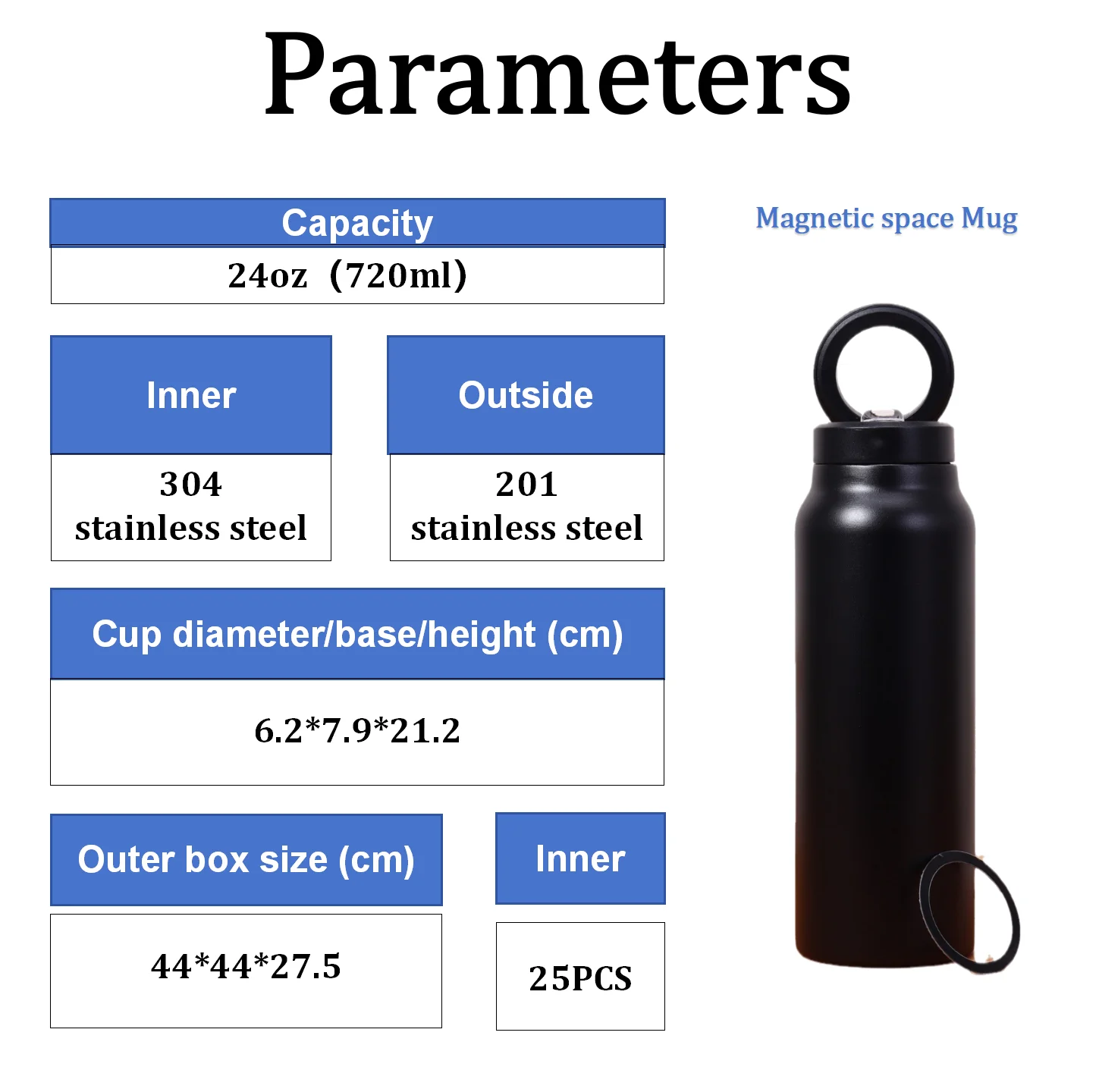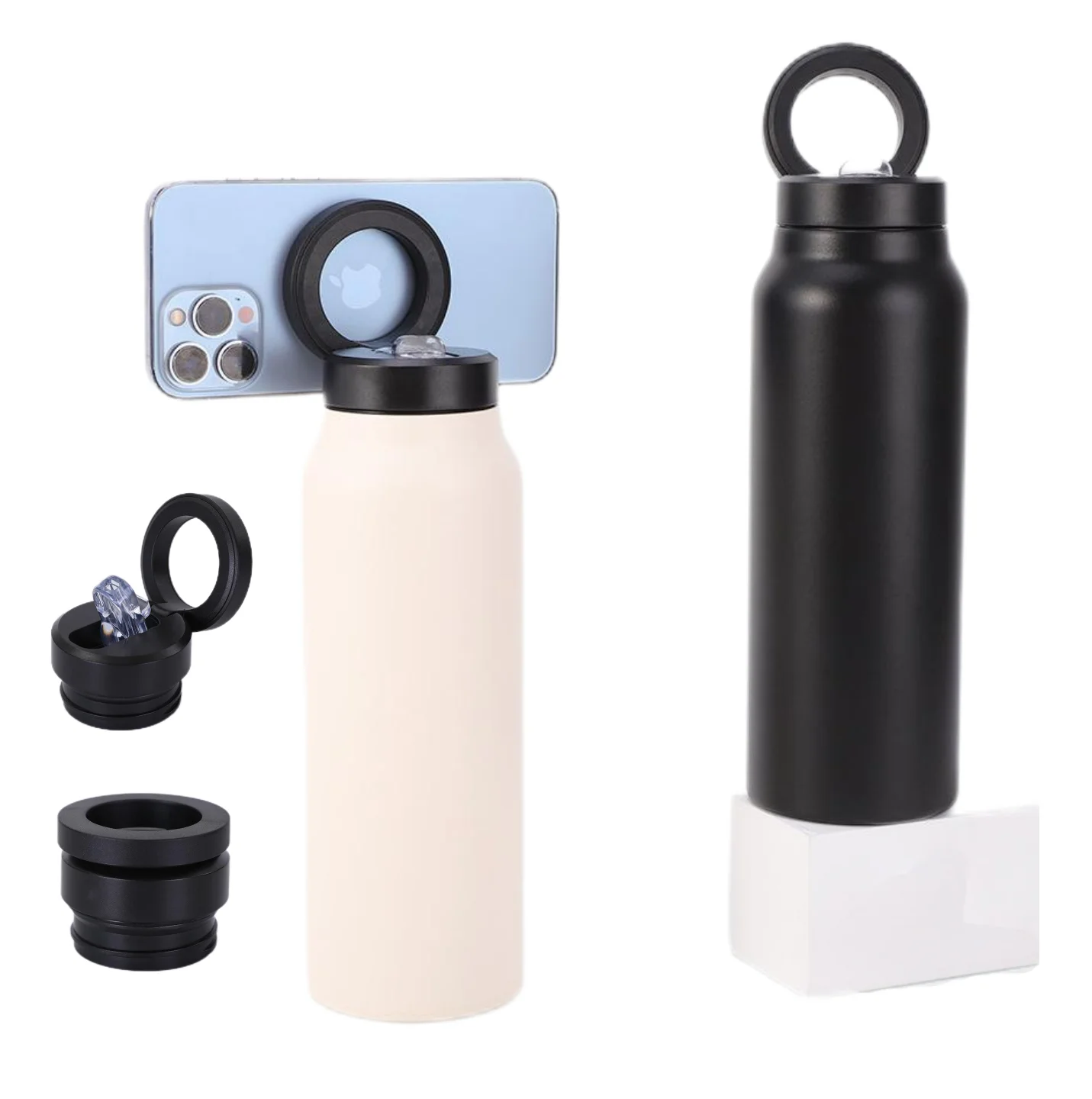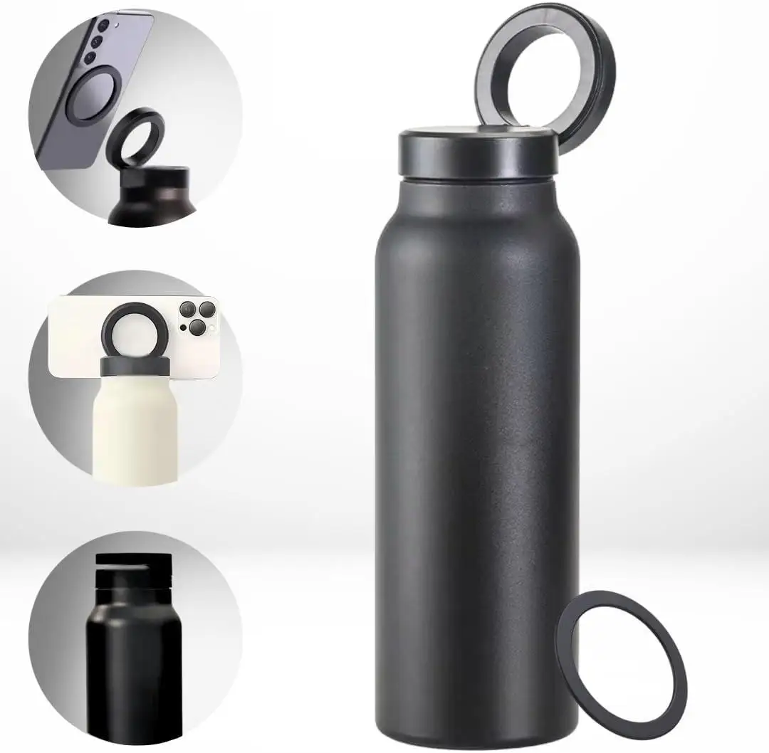 24oz Large Capacity Stainless Steel Insulated Space Mug Water Bottle with Magnetic Phone Mount for Boiling Water