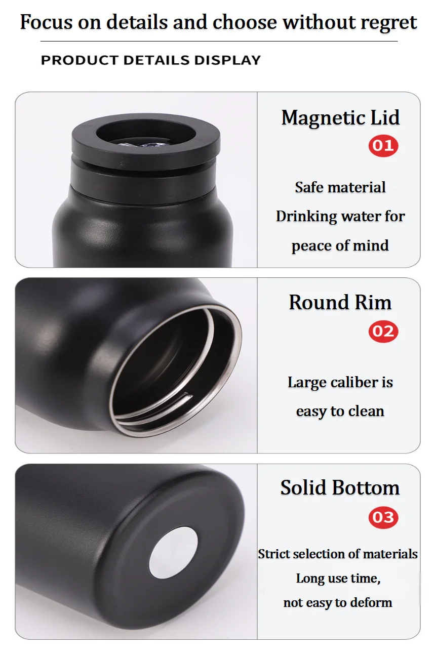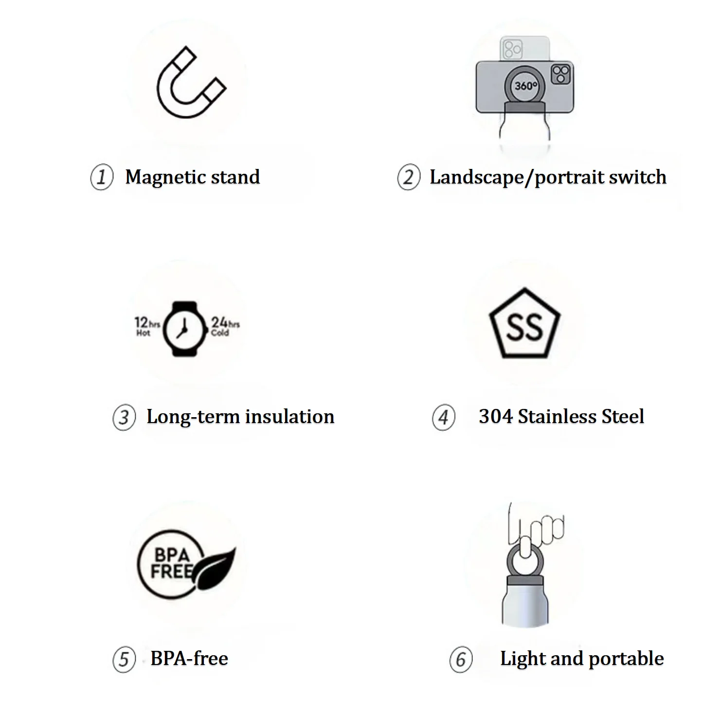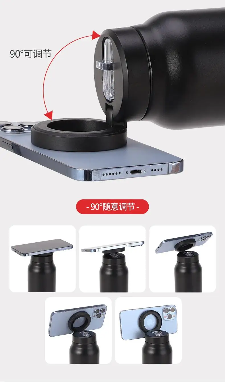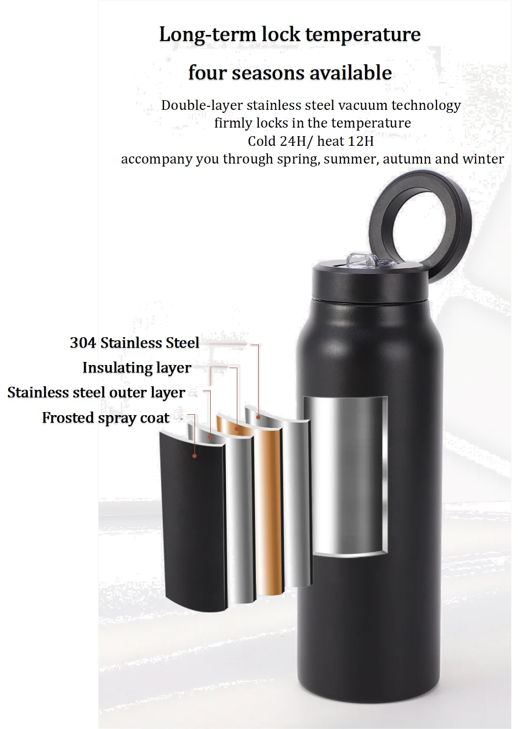 24oz Large Capacity Stainless Steel Insulated Space Mug Water Bottle with Magnetic Phone Mount for Boiling Water