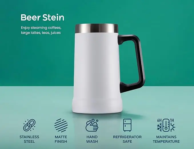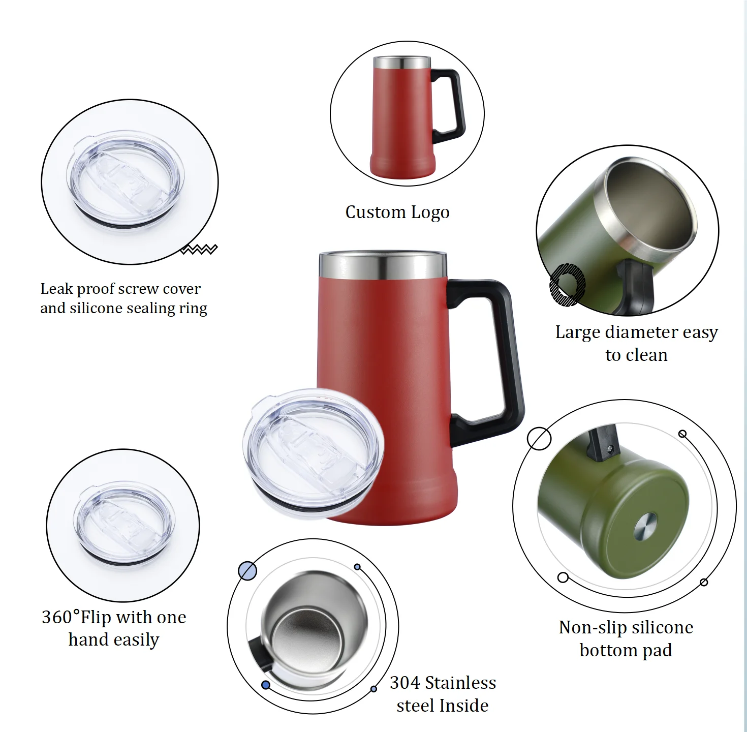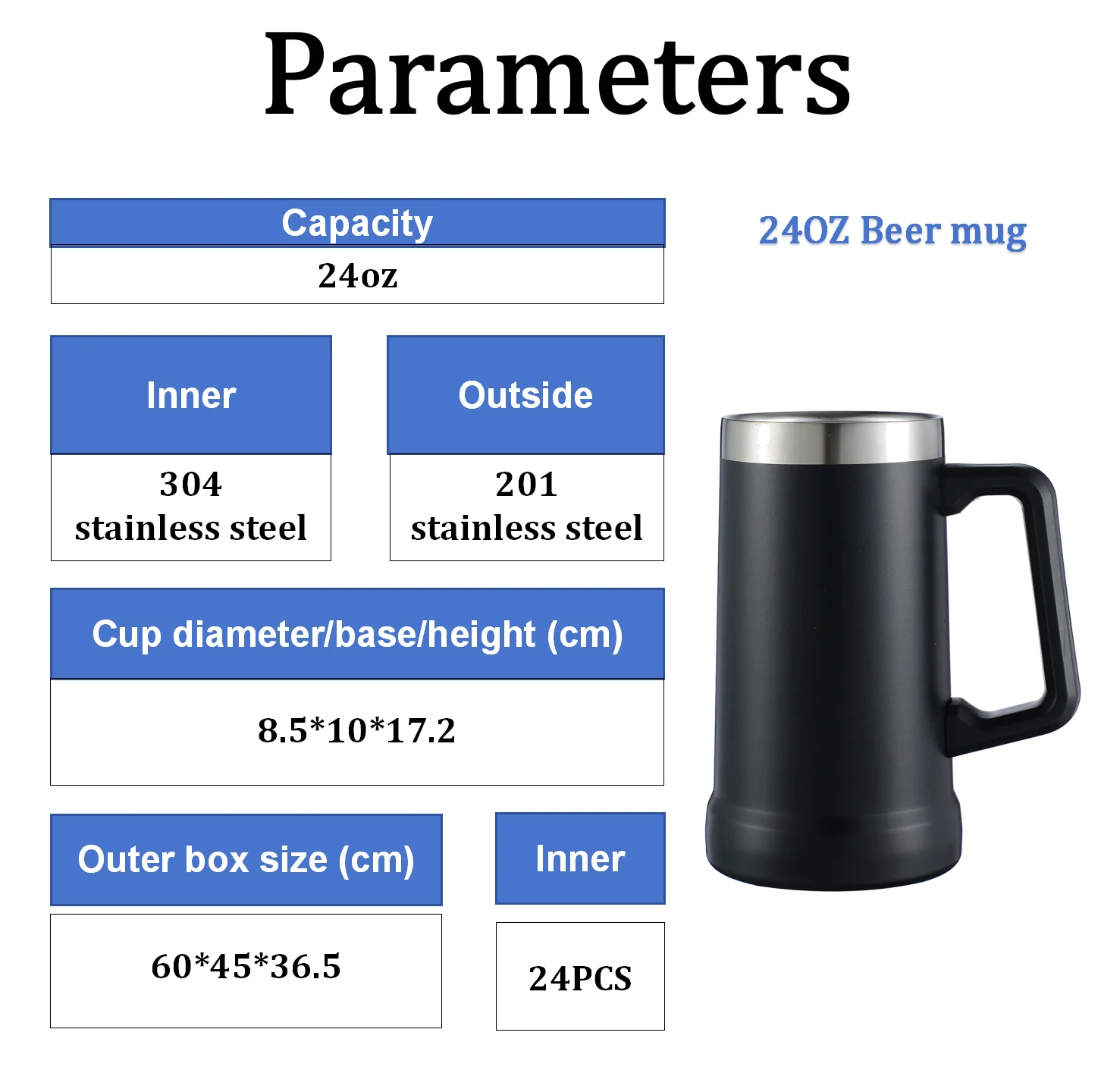 24oz Wide-Mouth Stainless Steel Beer Mug with Insulated Handle High Quality Large Capacity Factory Wholesale