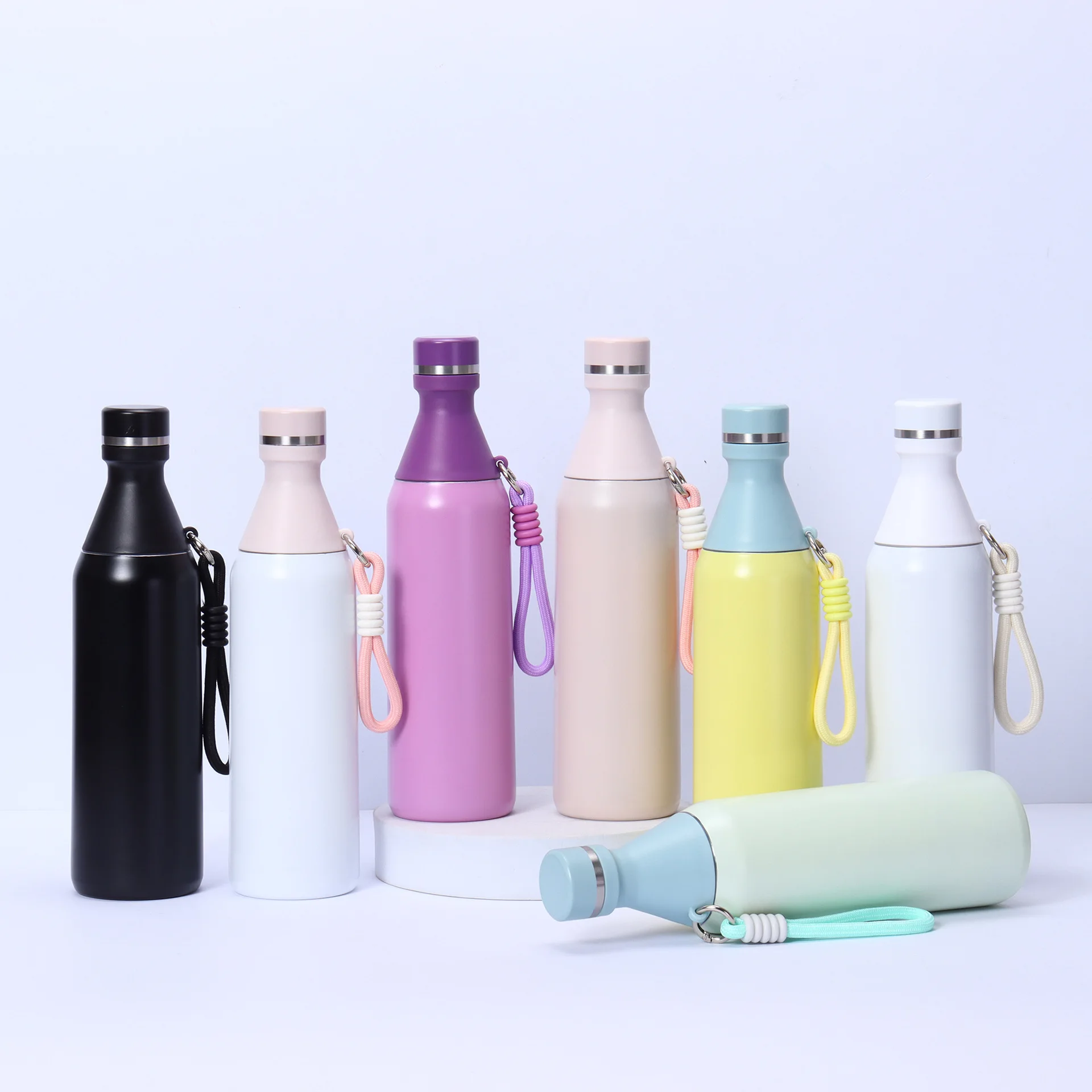 304 Stainless Steel Double Layer Vacuum Insulated Bottle With Carrying Cord Portable Sports Hot Water Bottle 500ml