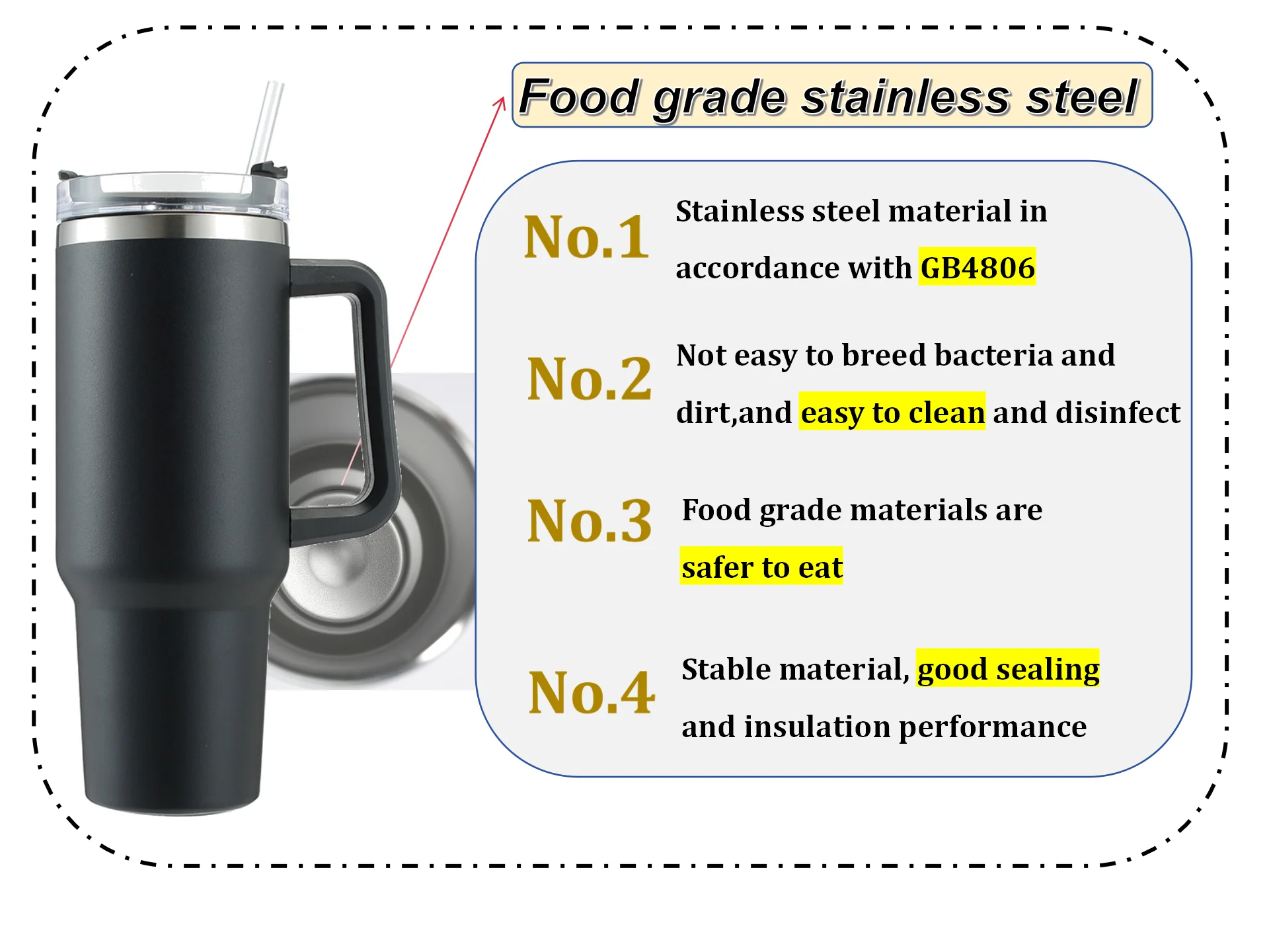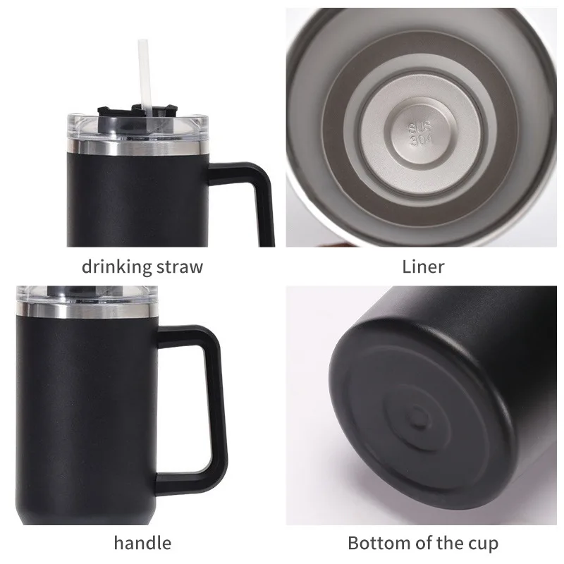 40oz Stainless Steel Tumbler with Handle and Straw Popular Car-Friendly Anti-Scratch Slip Customized Logo Option