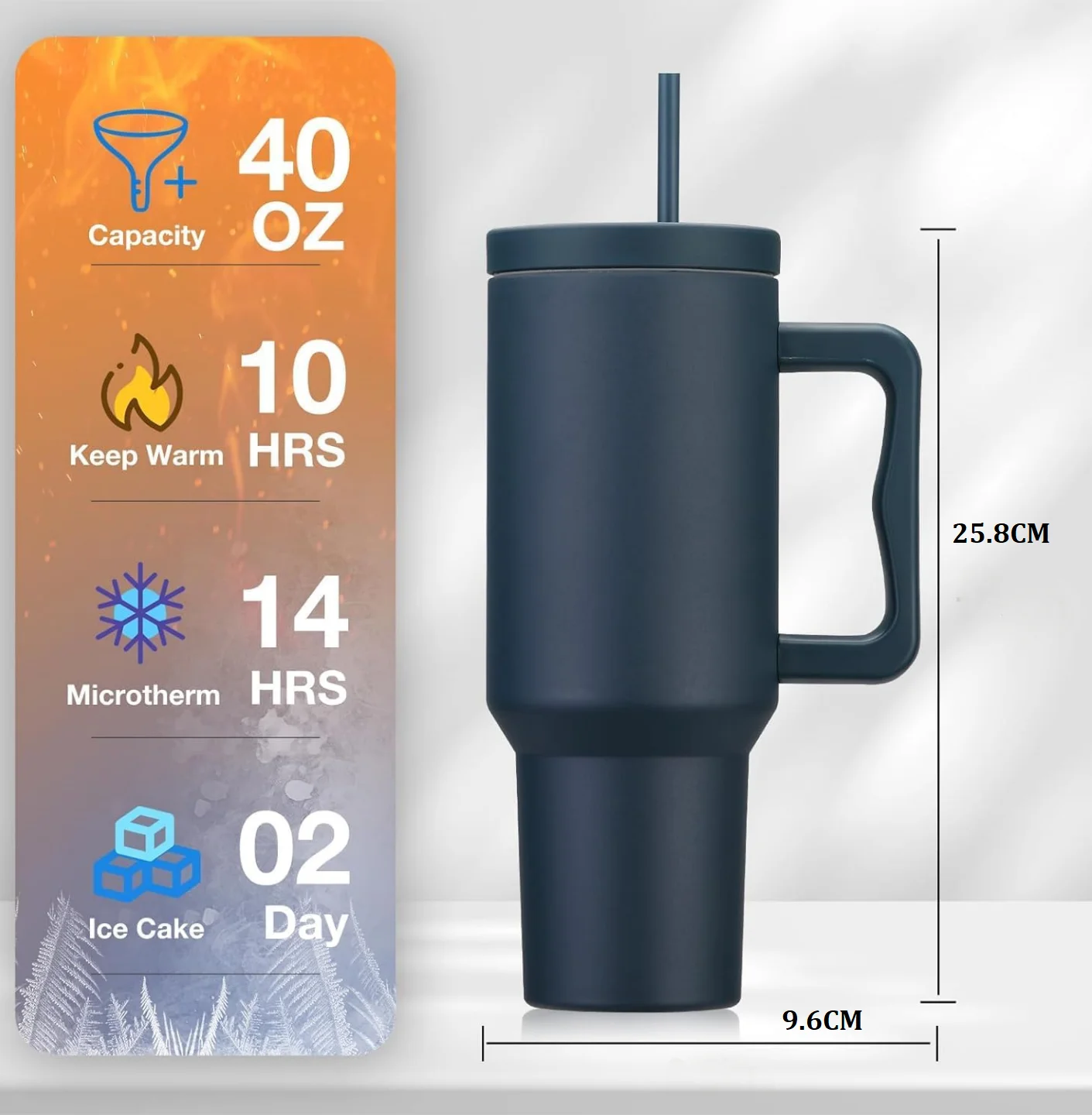 After manual testing by our factory team and professional testing by the institution, our 40oz generation tumbler handle cup can keep heat for about 10 hours and can keep ice for about 20 hours The data is for reference only, and the actual situation may change slightly!!