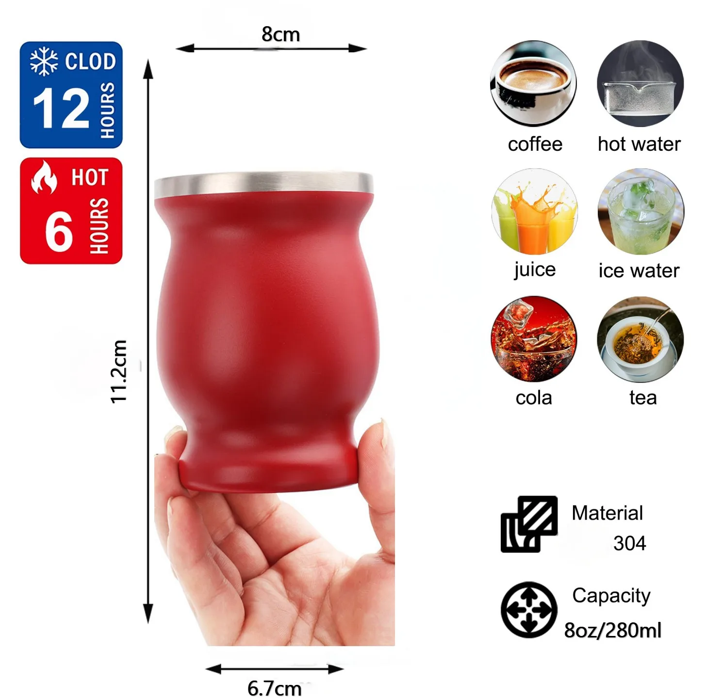 Best Seller 8oz Stainless Steel Classic Tea Cup Bambilla High-End Home Use Coffee Mug Double-Wall Yerba Mate with Straw Spoon