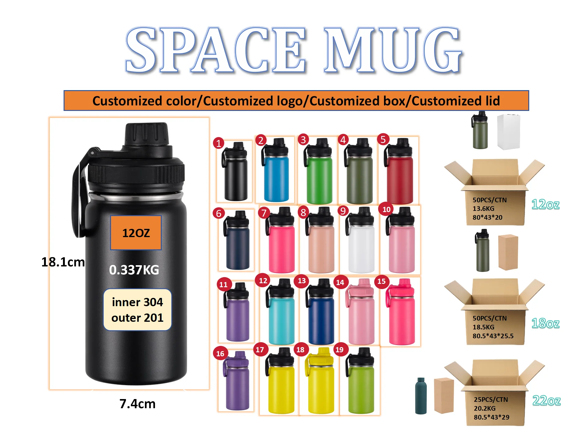 Custom 12oz Double Wall 304 Stainless Steel Vacuum Insulated Kettle Large Capacity Space Design Sports Mug Camping Applicable