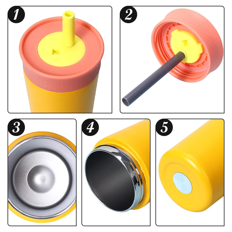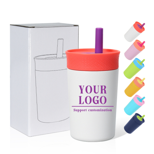 Custom logo Double Wall Vacuum Coffee Mug Stainless Steel Insulated 12oz Kids Tumbler with Straw