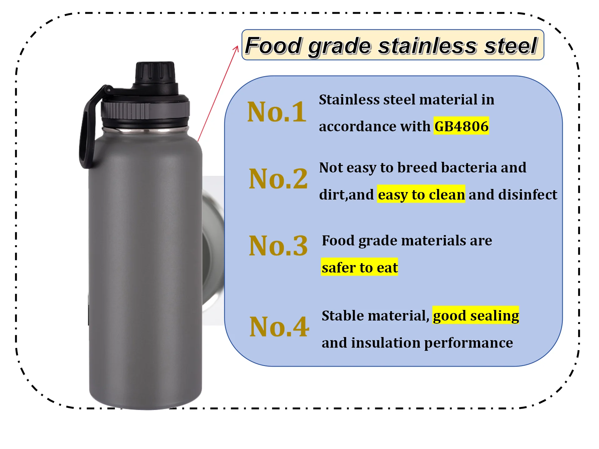 1.Stainless steel material in accordance with GB4806 2.Not easy to breed bacteria and dirt,and easy to clean and disinfect