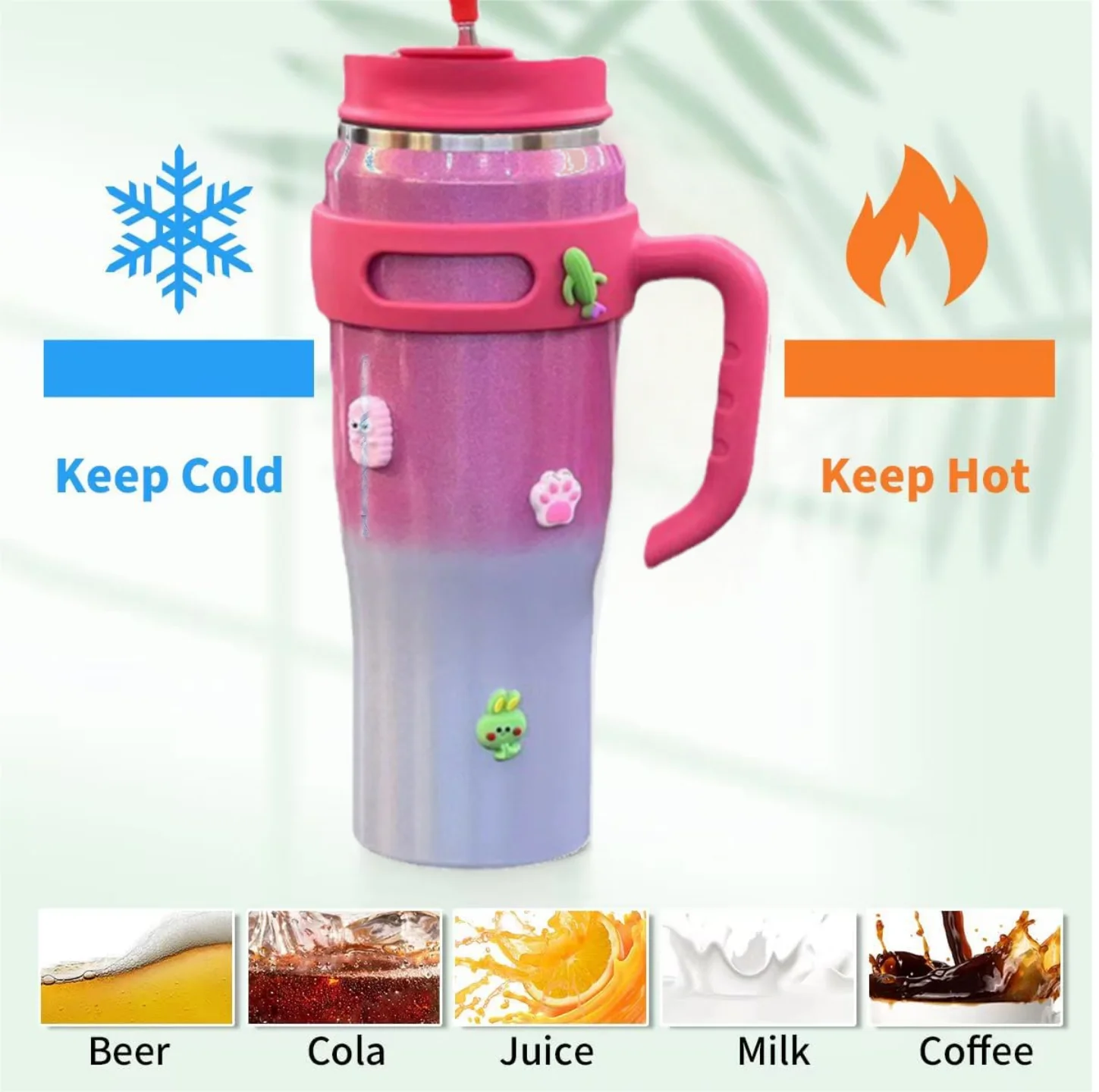Hot Sale Premium 40oz Tumbler with Straw Stainless Steel Coffee Cup With Rainbow Paint Insulated Tumbler with Handle