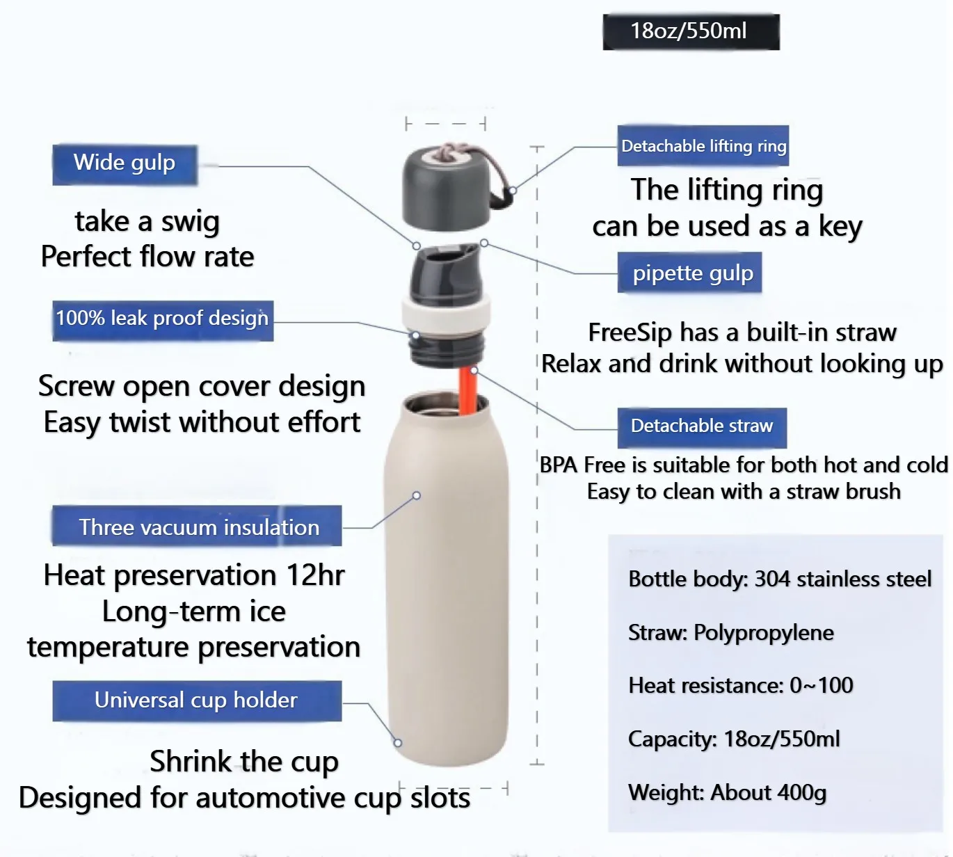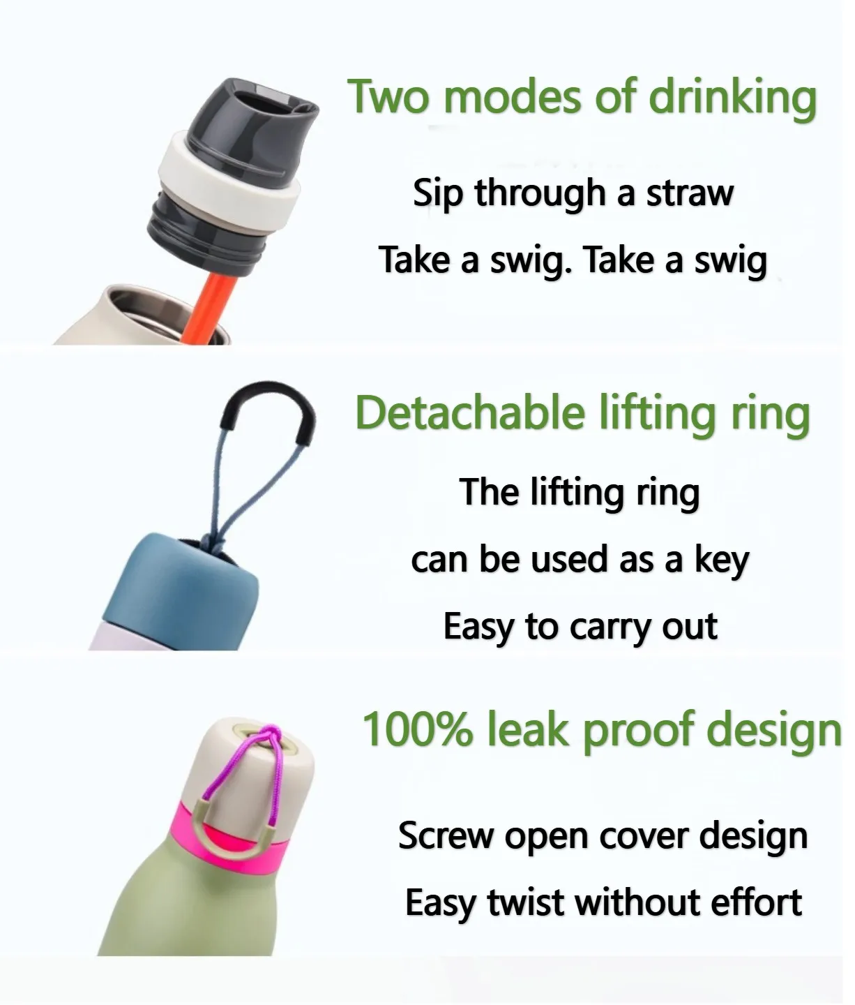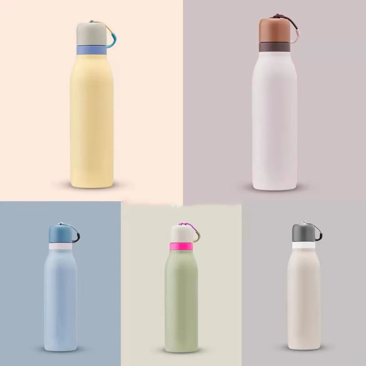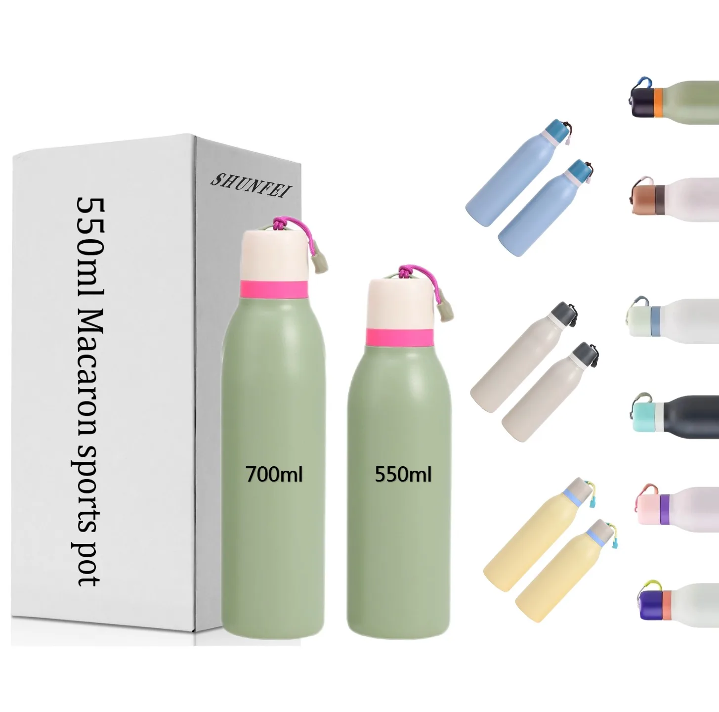 Private Label 550ml/700ml Stainless Steel Vacuum Insulated Water Bottle BPA-Free Free Straw Sip Rope Drinkware for Back School