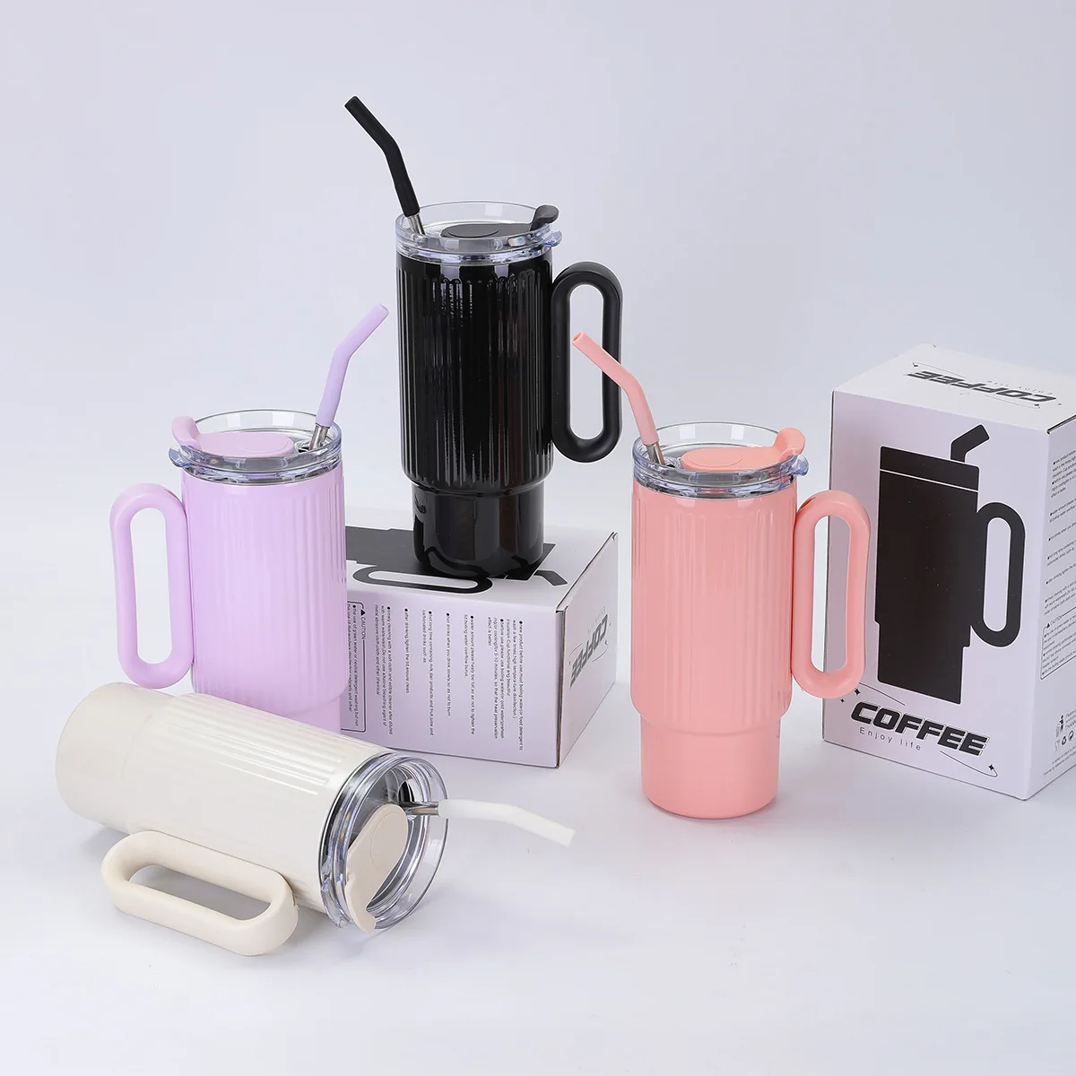 New Design Travel Tumblers Reusable Stainless Steel Water Bottle Cups 40oz Insulated Tumbler With Handle and Straw