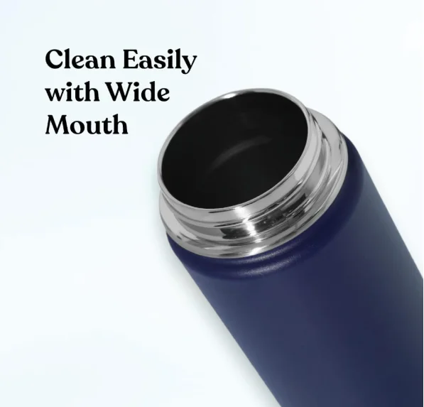 The wide mouth opening makes it easy to fill, clean, and add ice cubes. Enjoy the versatility of your bottle as it accommodates various beverages and makes maintenance a breeze.