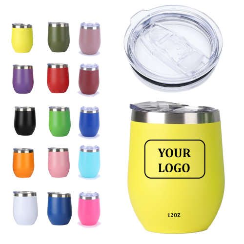 Eco-Friendly Custom 12 Oz Powder Coated Wine Tumbler 12oz Stainless Steel Coffee Mug with Sliding Lid and Straw