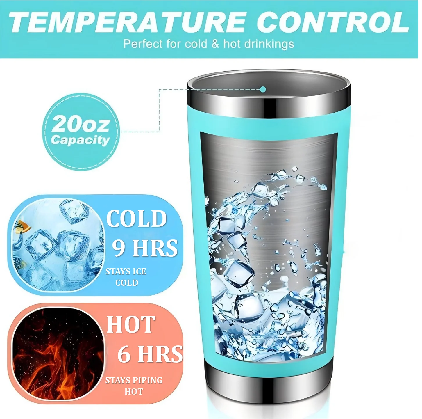 After manual testing by our factory team and professional testing by the institution, our 40oz generation tumbler handle cup can keep heat for about 10 hours and can keep ice for about 20 hours The data is for reference only, and the actual situation may change slightly!!