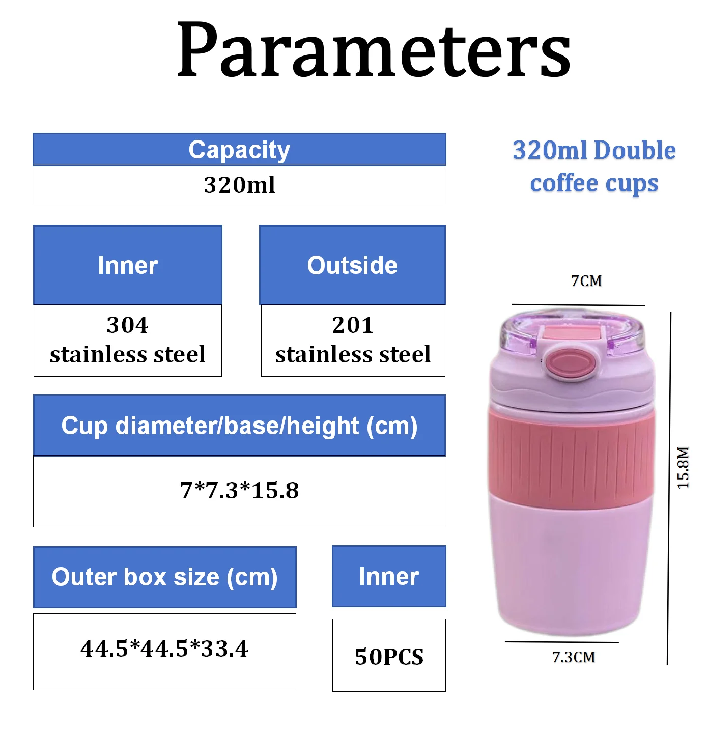 Wholesale New Product Travel Tumbler 320ml Stainless Steel Vacuum Insulated Water Bottle with Silicone Sleeve